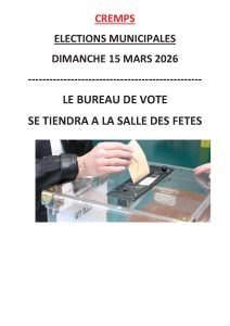 Le conseil municipal est l’assemblée délibérante élue de la commune. A Cremps, il est composé de 11 élu(es) : 5 femmes et 6 hommes